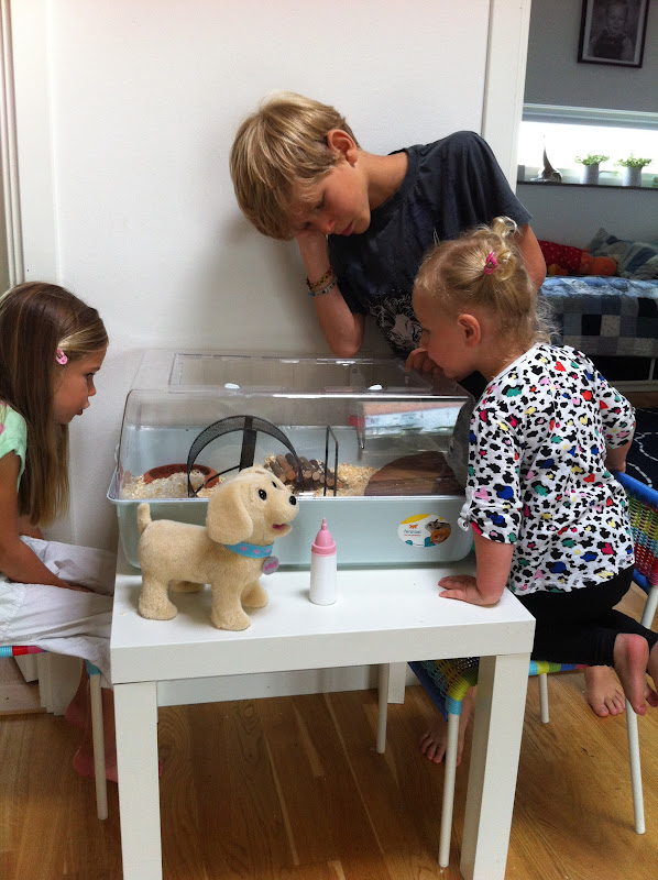 Som jag har berättat innan så är Emilia väldigt rädd för alla djur, till och med små flugor och myror! Så först ville hon inte ens titta ner i buren på söta Pricken!